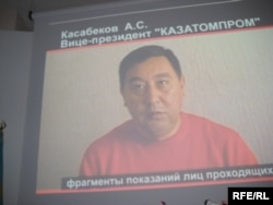 Вице-президент «Казатомпрома» Аскар Касабеков дает признательные показания против своего бывшего руководителя Мухтара Джакшиева. Видеосъемка КНБ. Астана, 1 июня 2009 года.