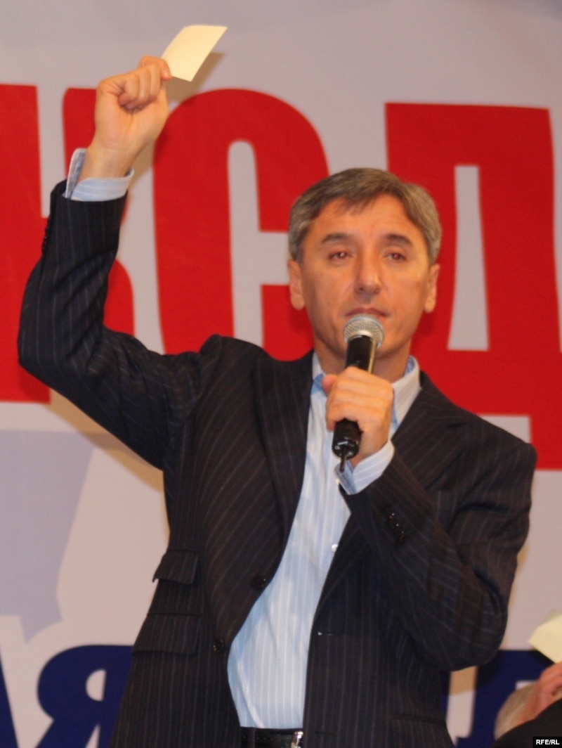 Тохтар Аубакиров, первый казахский космонавт, выступает на съезде новой оппозиционной партии ОСДП «Азат». Алматы, 24 октября 2009 года.