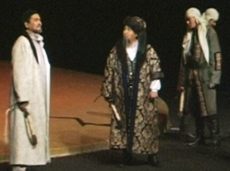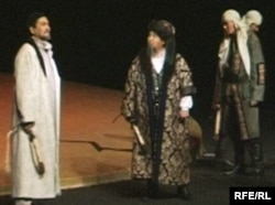 Актеры Карагандинского театра имени Сакена Сейфуллина играют трагедию "Абай" по одноименному роману Мухтара Ауэзова. 17 сентября 2009 года.