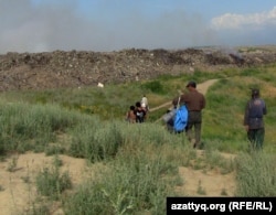 Репортеры нашего радио Азаттык видели людей, которые на территории полигона в овраге устроили себе временное жилище из картона и остатков линолеума. Там живут и малые дети, и старики.