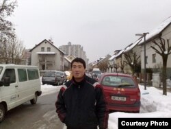 Казахский беженец из Жанаозена Асылбек Джумагазиев во дворе дома, где он живет. Любляна, февраль 2010 года.