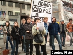 Акция протеста активистов словенского движения "Мир для каждого" и социального центра "Рог". Автор фото - Барбара Безнес.