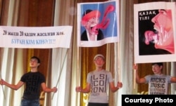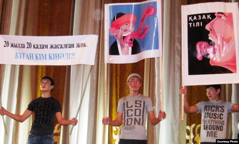 Выступление активистов движения «Мемлекеттік тіл» в поддержку казахского языка. Алматы, 20 сентября 2009 года.
