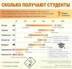Сейчас казахстанские студенты бакалавриата, получающие образование за счет государственных образовательных грантов, получают стипендию в размере 20 949 тенге (54 доллара США), отличники получают повышенную стипендию — 24 091 тенге (62 доллара). Согласно поручению Токаева, с 2020 года стипендию студентам повысят на 25 процентов, и ее сумма составит 26 тысяч тенге (67 долларов). Студенты должны прожить месяц на эту сумму. Между тем величина прожиточного минимума в стране составляет 29 698 тенге (77 долларов).