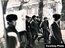 Демонстрация казахской молодежи в Алматы в декабре 1986 года. Фото из Центрального государственного архива Алматы.