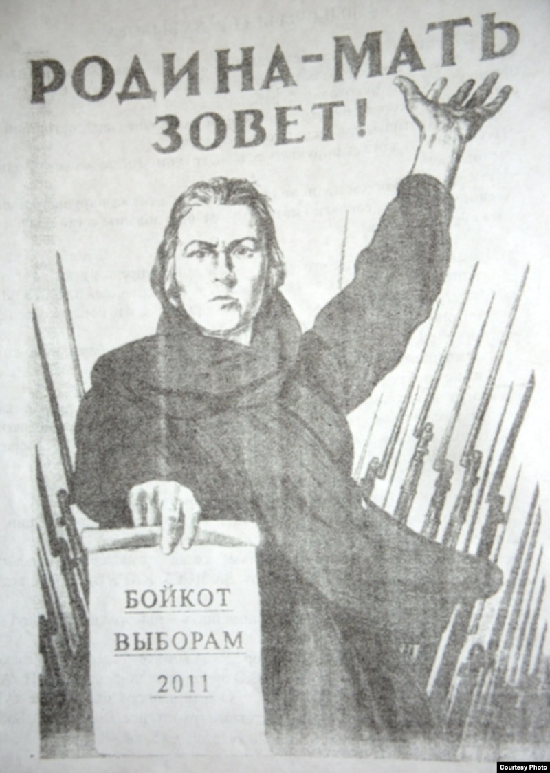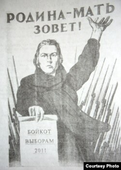 Неизвестно кем распространенные листовки используют мотив знаменитого советского плаката «Родина-Мать зовет!», под которым осуществлялась мобилизация советских граждан во время Второй Мировой войны.