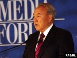 Президент Казахстана Нурсултан Назарбаев выступает на открытии Евразийского медиа-форума. Алматы, 27 апреля 2010 года.