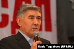 Сопредседатель ОСДП "Азат" Жармахан Туякбай выступает на съезде партии. Алматы, 12 февраля 2011 года.