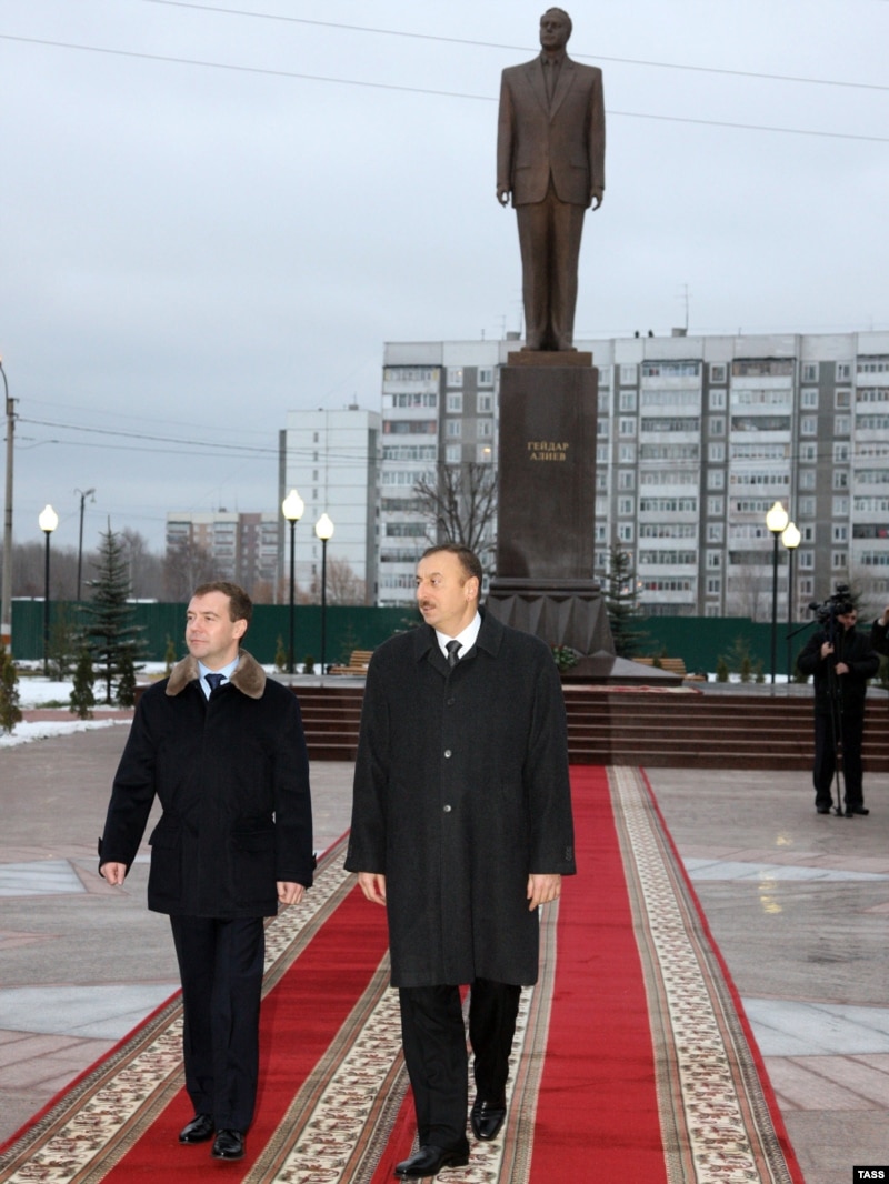 На этой неделе проведать памятник своего отца Ильхам Алиев поехал в российский город Ульяновск. Заодно на родине незабвенного вождя пролетариата Владимира Ильича Ульянова-Ленина президент Азербайджана встретился со своим коллегой, президентом России Дмитрием Медведевым. Как сообщали средства массовой информации, президенты обсудили политические и экономические вопросы. Вероятно, тронут был азербайджанский президент и сообщением о том, что вскоре в Ульяновске появится площадь Гейдара Алиева.