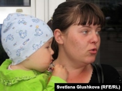 Маргарита Вирфель, супруга заключенного колонии в поселке Гранитный, с ребенком. Астана, 25 июня 2011 года.