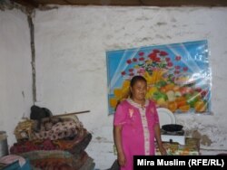 Фарида Толетаева в комнате здания бывшего наркодиспансера, где проживает со своей семьей. Село Базаркакпа Южно-Казахстанской области, 1 октября 2010 года.
