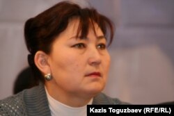 Маржан Аспандиярова, член политсовета ОCДП "Азат", в президиуме съезда партии. Алматы, 12 февраля 2011 года.